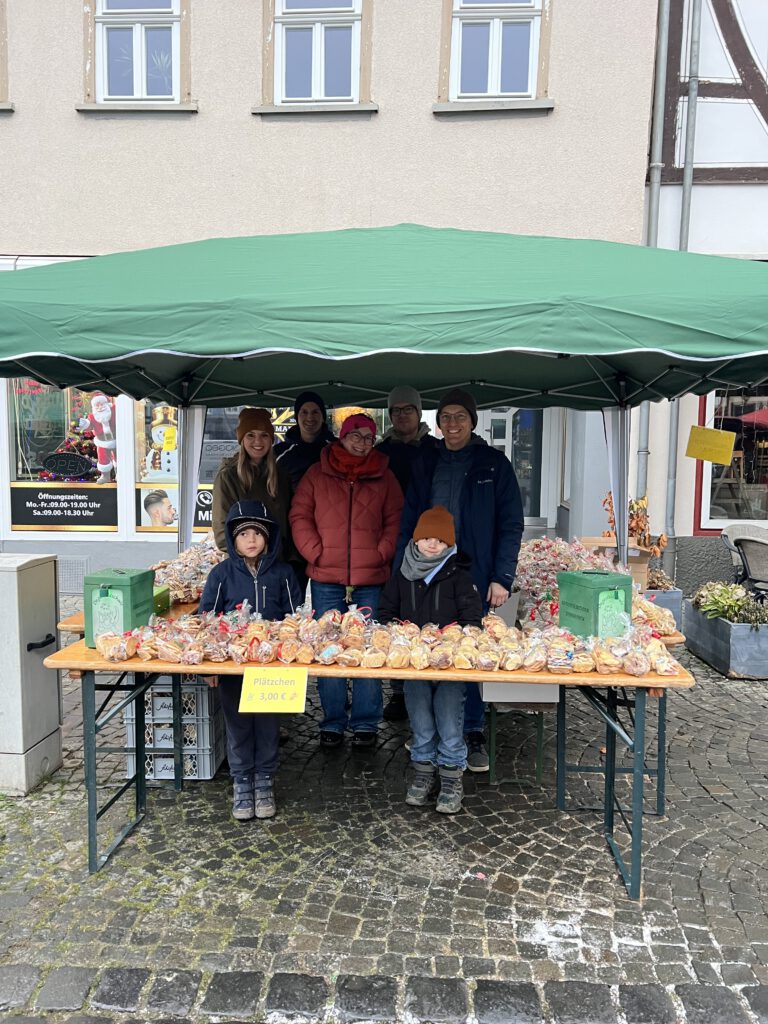 Der Plätzchenverkauf der Degerfeldschule auf dem Butzbacher Marktplatz am Nikolaustag war wieder ein voller Erfolg. Über 800 Tüten Plätzchen standen zum Verkauf. Die Plätzchen waren seit Mitte November von den Kindern mit Unterstützung von eifrigen Müttern, Vätern und Großeltern in der Schule gebacken worden, was den Schülern und Schülerinnen viele Freude bereitet hatte. Auch leckere selbstgemachte Marmelade, die von einer Oma gespendet worden war, gab es zu erwerben. Neben den vielen Eltern, die am Verkaufsstand mithalfen, liefen auch zahlreiche Kinder mit vollgepackten Körben durch die Innenstadt und boten die Leckereien den Passanten an. Die Einnahmen kommen über den Elternbeirat den Kindern wieder zu Gute.